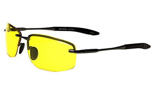 BeOne Rimless Polarized Night Driving Yellow Lens Flex Sunglasses (Black, Yellow)