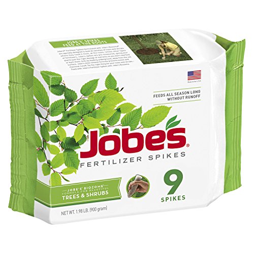 Jobe’s Tree Fertilizer Spikes, 15-3-3 Time Release Fertilizer for All Shrubs & Trees, 9 Spikes per Package