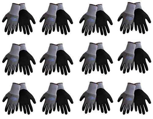 Tsunami Grip 500NFT Nitrile Coated Work Gloves Sizes Small-XL, Gray/Black, (12 Pair Pack) (Medium)