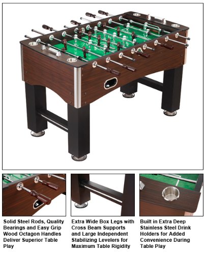 -. Feature : Highest Quality Foosball Table / Dimensions: 56" L x 33" W x 34.5" H / Beautiful Espresso Melamine Cabinet / Includes 2 High Quality Foosballs