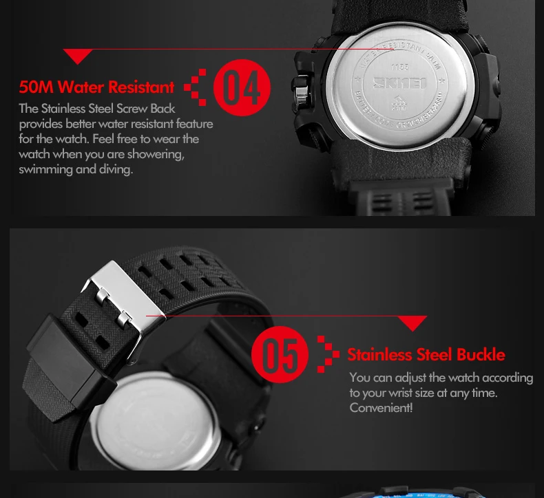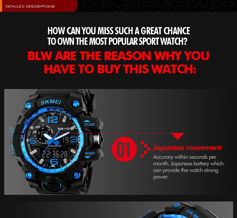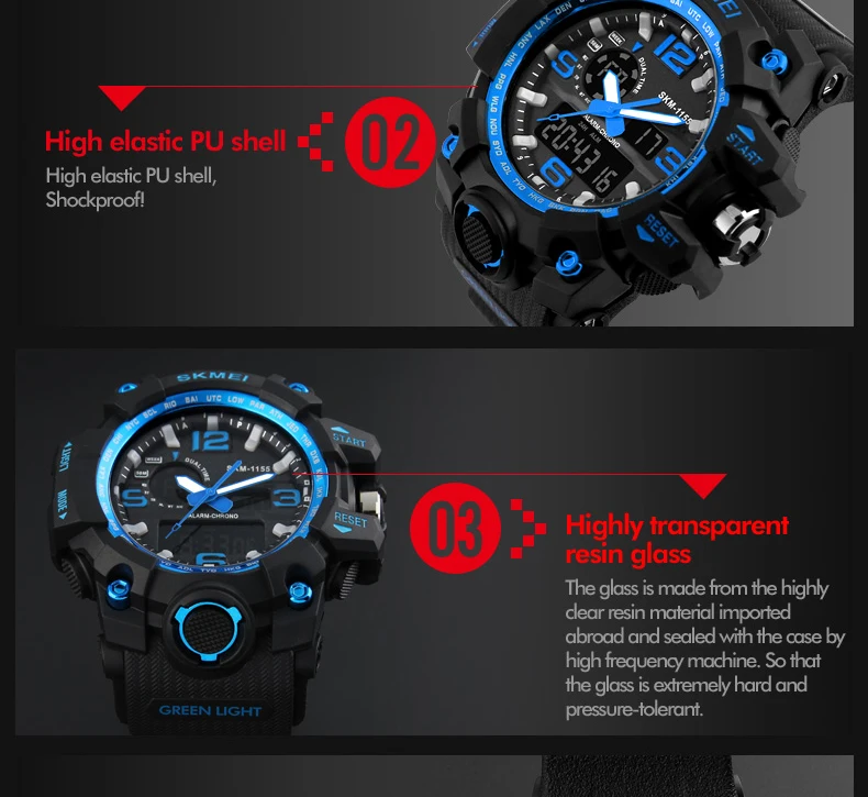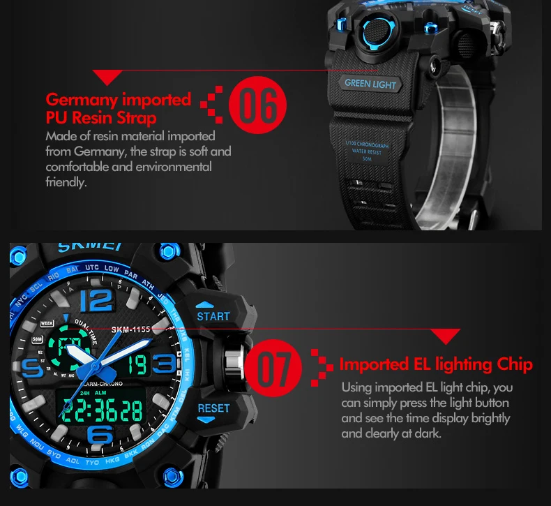 Feature:Auto Date,Water Resistant,Back Light,Chronograph,Multiple Time Zone,LED display,Alarm
