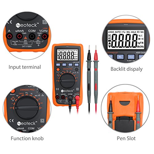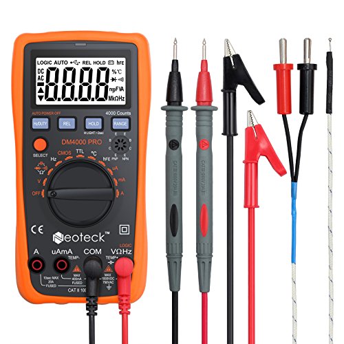Neoteck Digital Multimeters 4000 Counts Auto Manual Ranging AC/DC Voltage Current Resistance Capacitance Multi Testers with Backlit LCD for School Laboratory Factory and other Social Fields