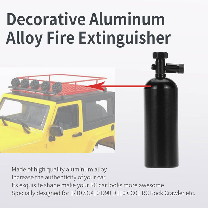 This fire extinguisher has a very high simulation performance of the real one, increase the authenticity of your car. It is small and portable to carry, you can put it on the roof rack of your RC rock crawler to decorate. If you want your car looks more awesome, this fire extinguisher will be a good choice.