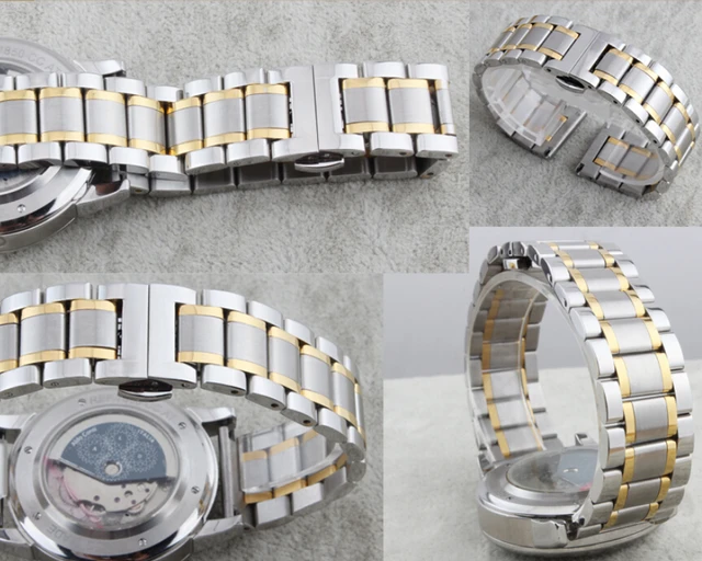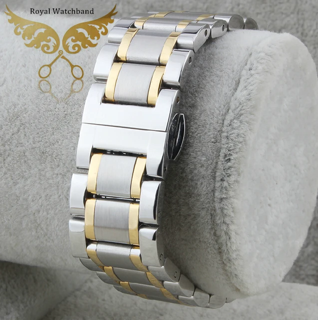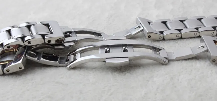 | [해외] 새로운 18 미리메터 20 미리메터 21 미리메터 실버 골드 새로운 고품질 광택 스테인레스 스틸 시계 밴드 스트랩 팔찌 더블 눌려서 걸쇠 |