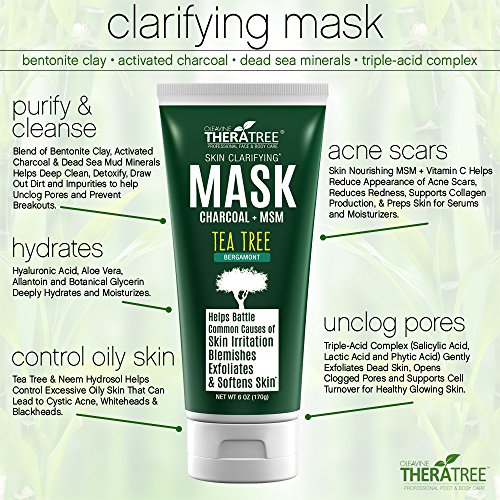 -. Title : Clarifying Mud Mask with Dead Sea Minerals, Activated Charcoal & Tea Tree, Acne & Blackhead Control for Face & Body, Natural Unclog Pore Reducer, Controls Oil & Purify Skin