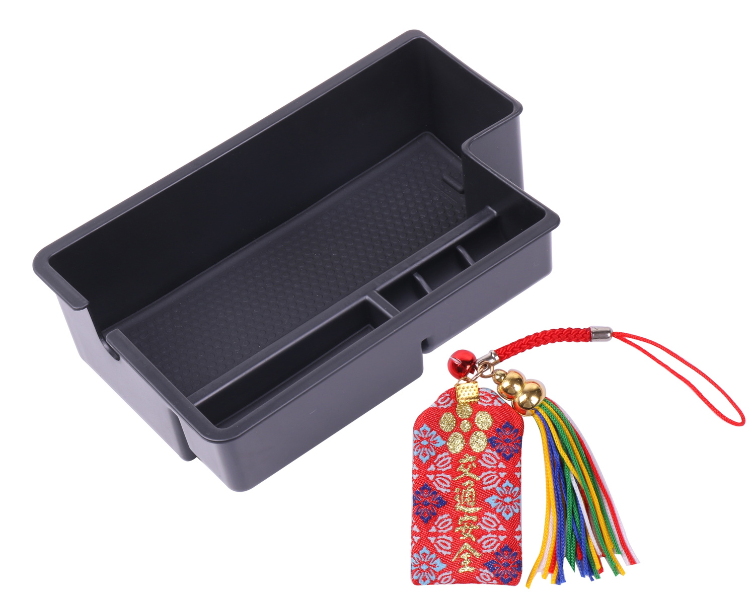 ・ セット内容:コンソールボックストレイ×1、ラバーマット×2、交通安全お守り×1 サイズ:コンソールボックストレイ/長さ18.2cm、幅12.5cm、高さ5cm 材質:ABS樹脂 重量:160g カラー:ブラック 適合車種:アウトランダー スポーツRVR ASX用