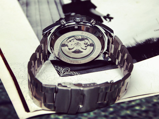 強固なステンレススチールバックカバー、重厚なビックフェイスデザインでずっしりとした重量感のある腕時計です、見た目も高級時計を思わせるようなデザイン!メンズ、レディース問わず着こなせるデザインです