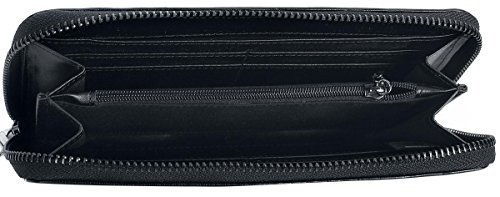 -. Feature : Made of faux-leather / Zip around closure / 8 card slots, 2 bill-size/checkbook slots, and is divided by a center zippered coin purse compartment which makes two additional slots / 8 in x 4 in x 1 in / Vegan friendly