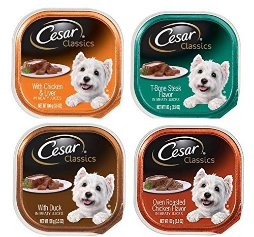 -. Title : Cesar Classics Dog Food 4 Flavor 8 Can Bundle: (2) Chicken & Liver, (2) T-Bone Steak, (2) Duck, and (2) Oven Roasted Chicken, 3.5 Oz. Ea.