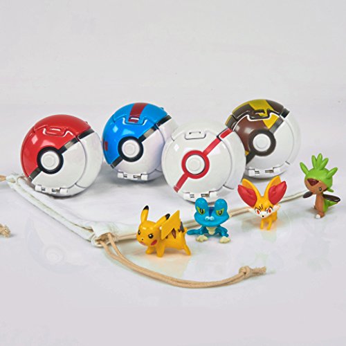 Practice Your Training Skills! Toss the Pokéball onto any hard surface, upon impact it pops open, launching the figure into battle! Set includes: Pokemon compatible balls, carry pouch and 4x 2" Anime action figures