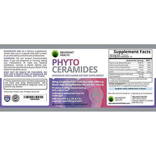 -. Binding : Health and Beauty -. Brand : Abundant Health -. Label : Abundant Health -. Manufacturer : Abundant Health -. ProductGroup : Health and Beauty -. ProductTypeName : HEALTH_PERSONAL_CARE -. Publisher : Abundant Health -. Studio : Abundant Health -. Title : phytoceramides