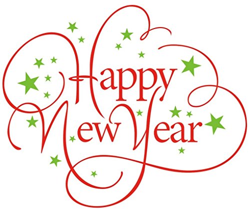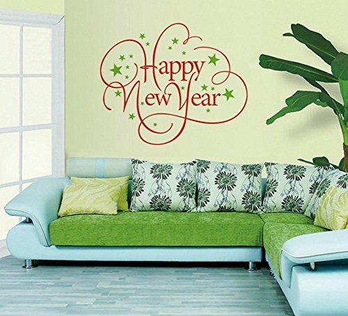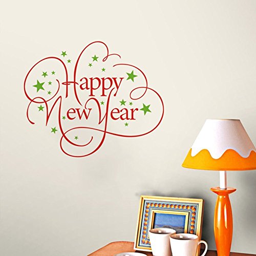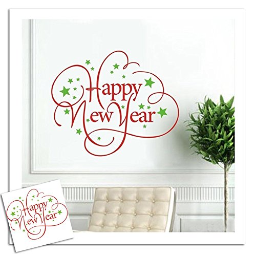 Happy new Year Vinyl Wall Stickers Decals Shop Decoration with Twinkling Green Stars Removable Vinyl Wall Stickers Decals for Home and Showcase Holiday Decoration