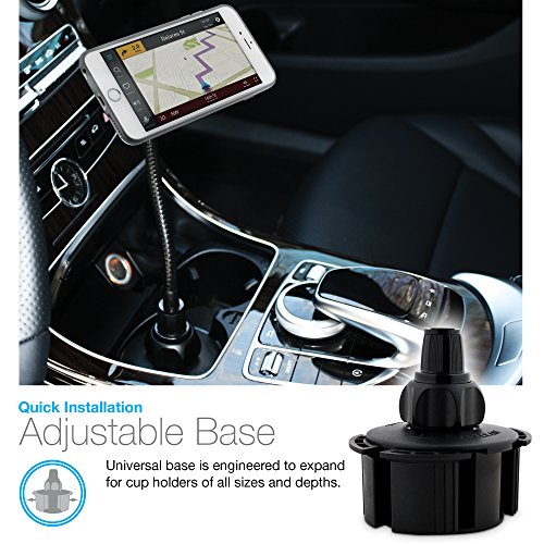 EASY TO INSTALL: Simple twisting action expands the base to fit cup holders of all sizes and depths (backseat holders too!) for a solid grip. An 11-inch Gooseneck offers maximum extension and flexibility, so your device stays exactly where you want it. Ideal for vehicles with drivers of different heights
