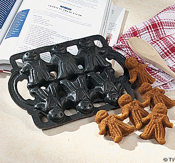 -. Feature : Any cook will have fun making the family their favorite muffins in this wonderful pan / Made of cast iron / Makes six 3" x 2" gingerbread man-shaped muffins / The pan measures approximately 8.5"L x 6"H / The heavy, high quality cast iron will last virtually forever