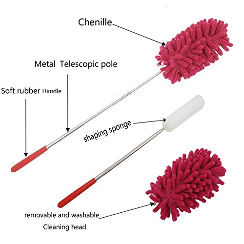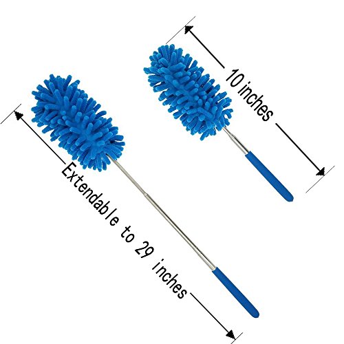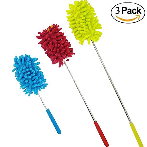 -. Feature : Easily clean those Hard-to-reach spots - Microfiber technology means millions of tiny fibers quickly and effectively grab hold of dirt, dust and moisture - allowing you to effortlessly clean your home in just minutes / Extendable, Washable and Anti-static - These dusters feature a stainless steel pole that measures 29 inches fully extended, and collapses back to 10 inches for convenience and easy storage. They are 100% hand washable and easy to re-use / Wide range of use,Duster is suitable for cleaning the dust in the car,Computer, air conditioning, TV and other household appliances dust, cleaning the dust from the sofa, table, cabinet, etc.Can be inserted into any corner Let the dust nowhere to hide / This duster set includes three retractable brushes in blue,yellow and red. They are lightweight and durable, with an anti-static and non-scratchy design. / Superfine fiber, super absorbent, new chenille fiber raw material, is not easy to produce dust itself,Adsorption of duston the surface of the object, there are super absorbent and dust absorption(5 times than cotton)
