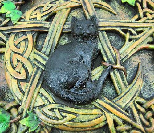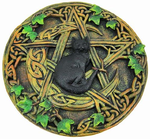 Black Cat Crescent Moon Pentacle Wall Hanging Plaque