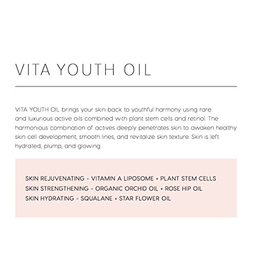 - APPLE & ARGAN STEM CELLS - This formula packs in not one, but two plant-based stem cells designed to support a vibrant complexion. After cleansing, massage one drop VITA YOUTH OIL onto face, neck and decollete.*