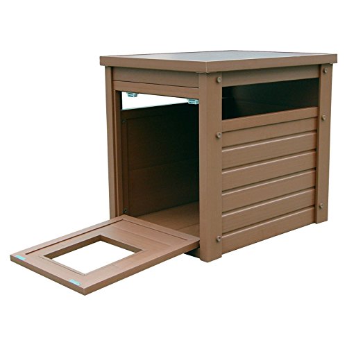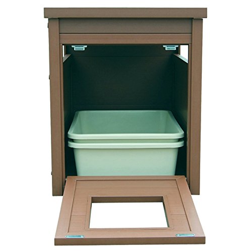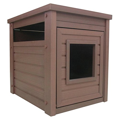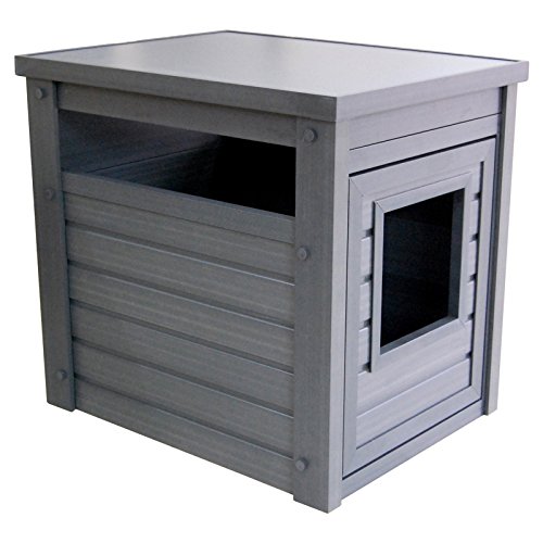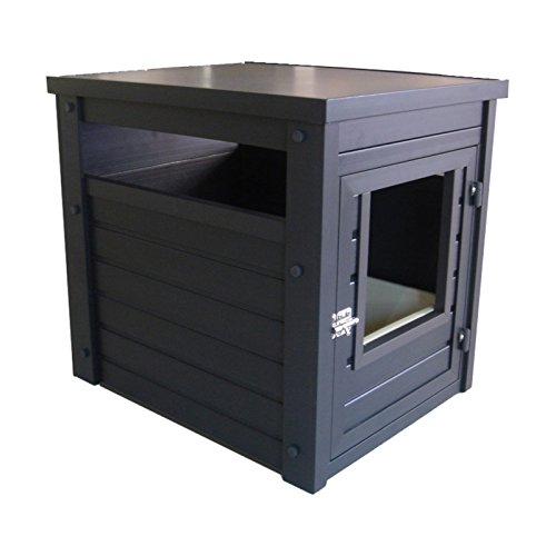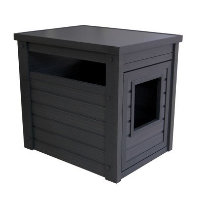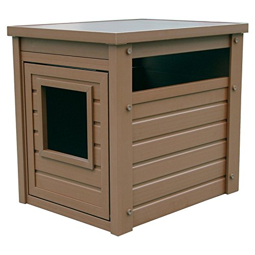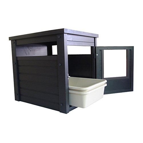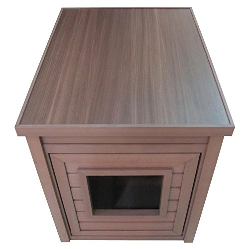 Studio : New Age Pet Publisher : New Age Pet Binding : Misc. Product Description A stylish end table that hides away the litter pan. made with ecoflex, an eco-friendly and durable composite material that is non toxic, non absorbent and easy to clean. requires no maintenance and assembles in minutes. get's the litter pan out of sight while providing easy access for kitty. ecoflex doesn't absorb moisture or urine so a simple wipe with a damp cloth cleans up any misses. color is in the material so scratches are less likely to show. no tools required 10-min easy assembly. 0