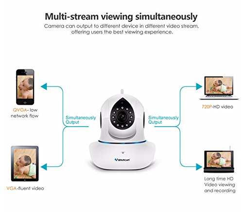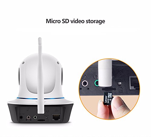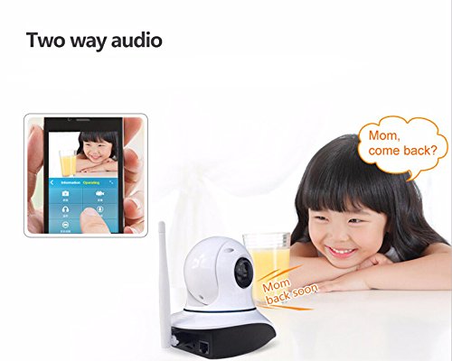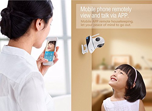 -. Feature : 720P HD 3.6mm lens, H.264 compression, high definition and further vision, support ONVIF protocol, built-in IR-CUT, 12pcs LED, IR distance up to 10m. / Remote control IP camera rotation by mobile phone APP, 355°Pan ,90°Tilt and 56°Viewing angle to achieve 360 degree panorama monitor. / Two-way audio: built-in speaker and microphone, you can listen and talk via smart phone APP, starting to communicate with your families at anytime anywhere. / Infrared night vision :Built in 12pcs infrared night vision LED lights ,clearer night view. / Multi platform and multi users viewing , support 4 online uses viewing simultaneously and support Android, IOS, ipad, PC computer view.