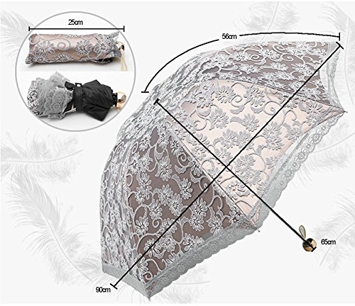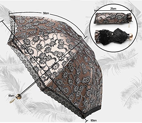 -. Brand : Honeystore -. Color : Black -. Department : womens -. Feature : SPF: UPF>50+ / Can't be used in rain. / 8 ribs made from strong fiber for extra support. / Sunscreen fabric production, double super sunscreen, light transmittance is "0". / Honeystore is a registered trademark and sold only by Honeystore. Make sure the seller is Honeystore to avoid buying fake items. -. Label : Honeystore -. Manufacturer : Honeystore -. Model : 20160406-007 -. MPN : 20160406-007 -. PartNumber : 20160406-007 -. ProductGroup : Apparel -. ProductTypeName : LAGE -. Publisher : Honeystore -. Size : One Size -. Studio : Honeystore -. Title : Honeystore Triple Folding Sun Parasol P.R.Incess Lace Outdoor Collapsible Umbrella
