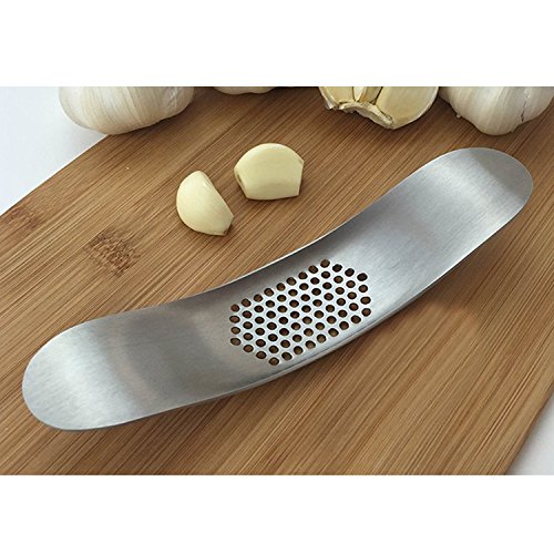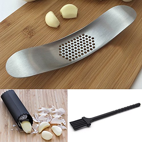 Kangkang@ Rocker Rocking Garlic Press Crusher Stainless Steel Mincer Chopper Home Kitchen Accessory with Garlic Peeler and Cleaning Brush