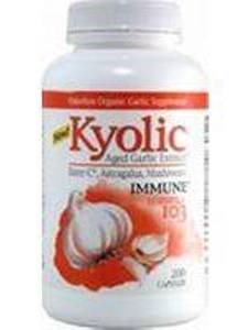 Studio : Kyolic Publisher : Kyolic Binding : Health and Beauty Product Description Kyolic Aged Garlic Extract Immune Formula 103. Description: Odorless Organic Garlic Supplement. Vitamin C, Astragalus. Immune. Kyolic Aged Garlic Extract begins with 100% organically grown garlic bulbs. There are then aged to perfection in a unique extraction process to eliminate odor and create beneficial compounds found only in Kyolic. This combination of vitamins, mushrooms and herbs helps to support healthy immune function. Free Of Sodium, yeast, dairy, preservatives, sugar, gluten, artificial colors and flavors. Disclaimer: These statements have not been evaluated by the FDA. These products are not intended to diagnose, treat, cure, or prevent any disease. 0