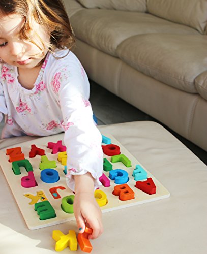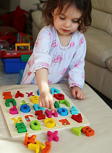 Studio : Toys of Wood Oxford Publisher : Toys of Wood Oxford Binding : Toy Product Description 26 chunky and colourful wooden alphabet letters in a sturdy wooden board with beautiful packing box. Easy to pack away and store. The chunky size and smooth wood is easy for little hands to handle. Toddlers like to hold these letters in hands. Match the alphabet with the same shape and size slots on the board. It is a good way to introduce preschool children to learn letters. Toys of Wood Oxford Limited, based in Oxford UK, specialises in fine quality multifunctional wooden toys with brand name "Toys of Wood Oxford" and children's fancy costumes "Fun Play". All products by Toys of Wood Oxford are exclusively available from Amazon sold by Toys of Wood Oxford Ltd or by Amazon. All of our products meet the criteria set by the EC Toy Safety Directive and CPSIA Standard and tested by International Accredited Labs. We pride ourselves on providing good quality products and first class customer service. We wish our products will bring lots of fun and enjoyment to your children and family. 0
