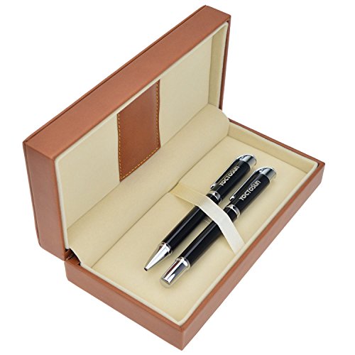 Yoctosun Ballpoint and Gel Ink Rollerball Pen Set in Luxury Gift Box - Black Ink - Smooth and Easy Writing for Men or Women in School, Office, Business & more (YS-BRPS-A)