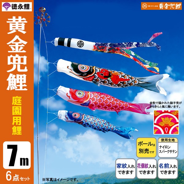 | 黄金兜鯉 庭園用大型鯉のぼり ポール別売り | 7m鯉3匹 7m鯉4匹 7m鯉5匹 | 8m鯉3匹 8m鯉4匹 8m鯉5匹 | 9m鯉3匹 9m鯉4匹 9m鯉5匹 | 10m鯉3匹 10m鯉4匹 10m鯉5匹 |
