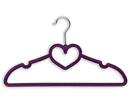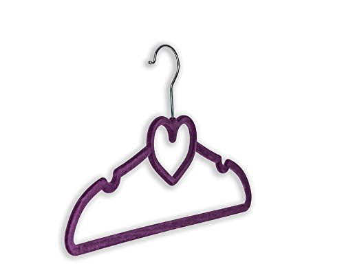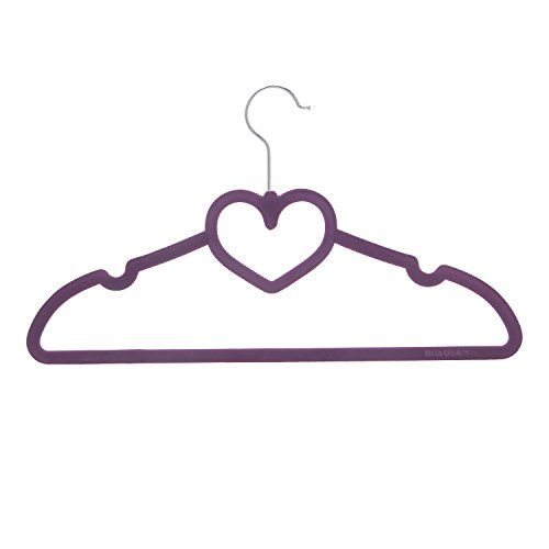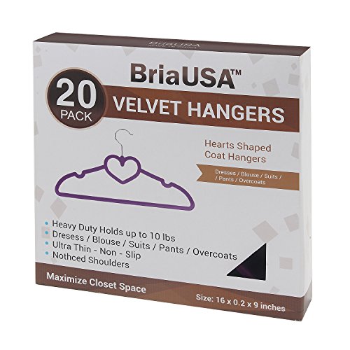BriaUSA Clothes Hangers Heart Shaped Slim, Sturdy with Steel Swivel Chrome Hooks – Purple – Box of 20
