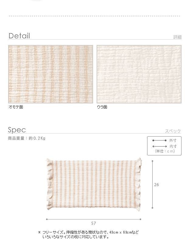 フリーサイズ。伸縮性があるので、35×50・43×63cmなどいろいろなサイズの枕に対応。