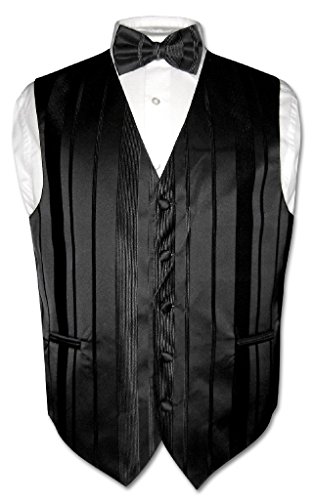 -. Title : Men's Dress Vest & BOWTIE BLACK Color Woven Striped Design Bow Tie Set
