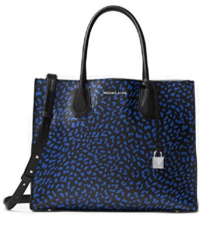 MICHAEL Michael Kors Mercer Large Leopard Leather Tote Bag , Electric Blue Black