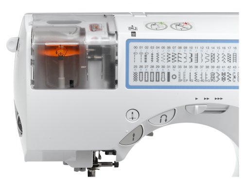 -. Feature : 85 stitch functions for optimal versatility / Bonus accessories included; walking foot, quilting foot and quilt guide / Quick-load thread cassette system threads the machine and needle / 5 styles of built-in, automatic buttonholes / Stitch width- and length- control