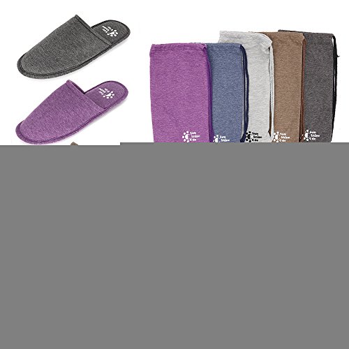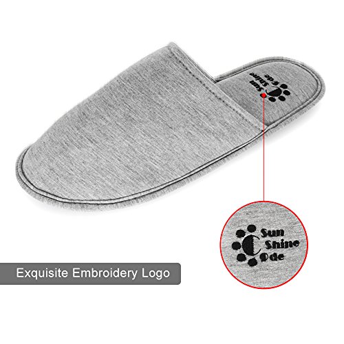Men's 4 Seasons Cotton Washable Slippers with Matching Travel Bag for Home Hotel Spa Bedroom, M, Grey