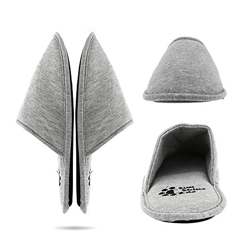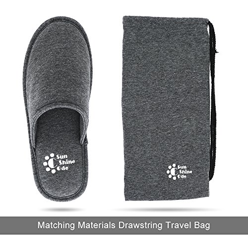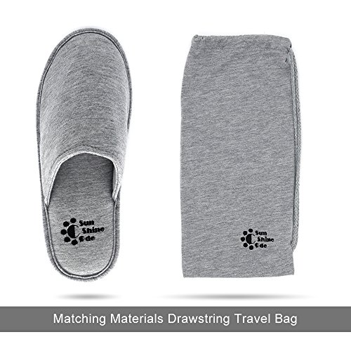 Men's 4 Seasons Cotton Washable Slippers with Matching Travel Bag for Home Hotel Spa Bedroom, S, Grey