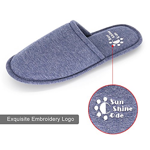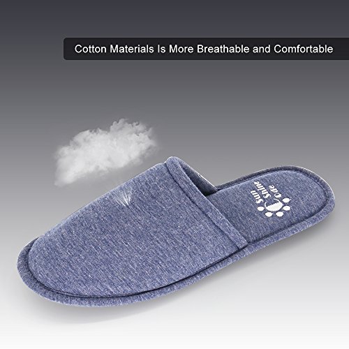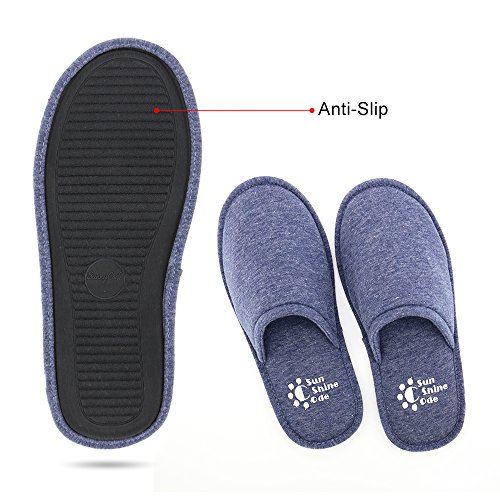 Men's 4 Seasons Cotton Washable Slippers with Matching Travel Bag for Home Hotel Spa Bedroom, M, Navy