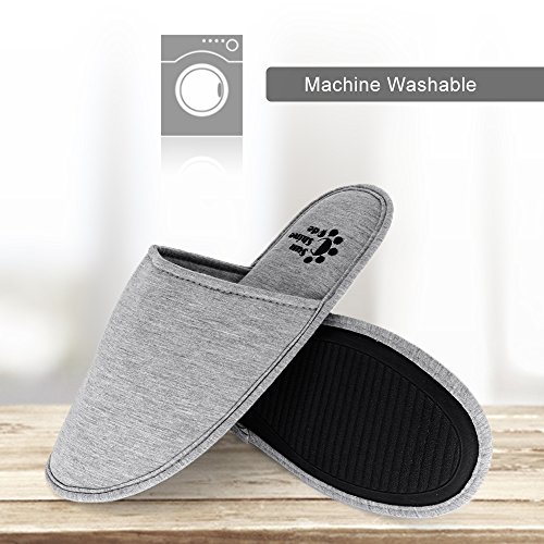 Men's 4 Seasons Cotton Washable Slippers with Matching Travel Bag for Home Hotel Spa Bedroom, L, Grey