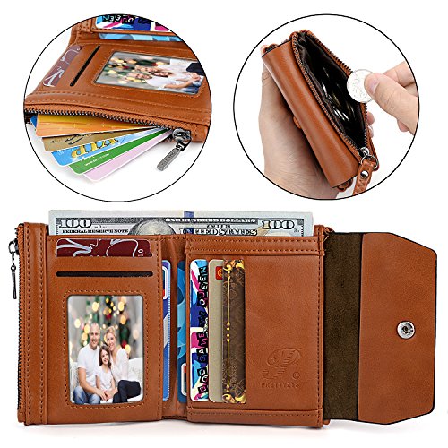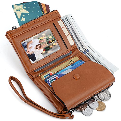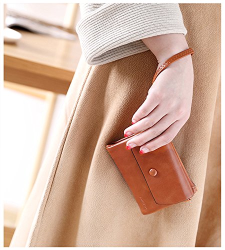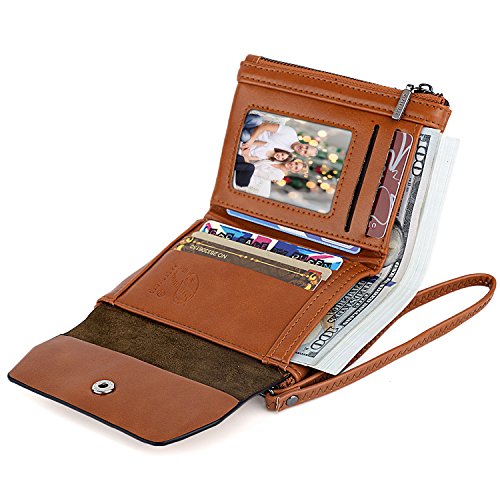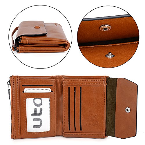 UTO Women Wristlet Small Wallet Compact Luxury Wax/Matte PU Leather Card Slot Zipper Coin Holder Purse