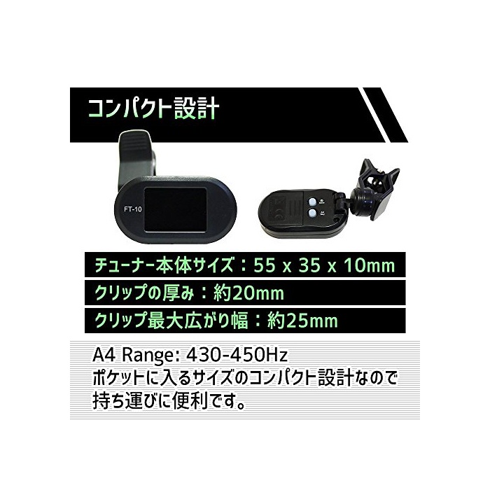 튜너 본체 사이즈:55 x 35 x 10mm,클립 최대 확대폭:약25mm