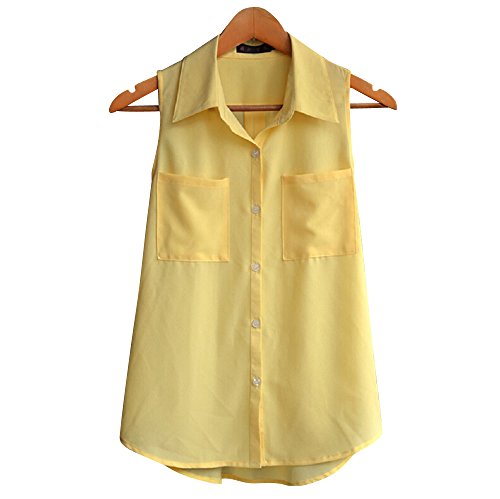-. Title : formanism ノースリーブ シフォン カラー スリム レディース シャツ (イエロー M)