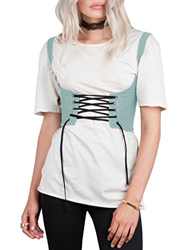 Features: lace up in the front to make it adjustable, double tank straps, none stretchy denim.