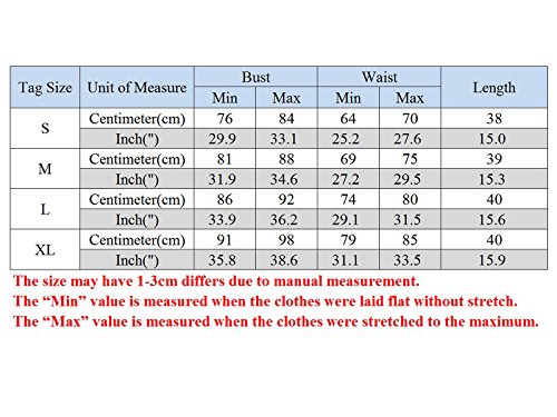 Inch(") S: ---Bust: 29.9-33.1 ---Waist: 25.2-27.6 ---Length: 15