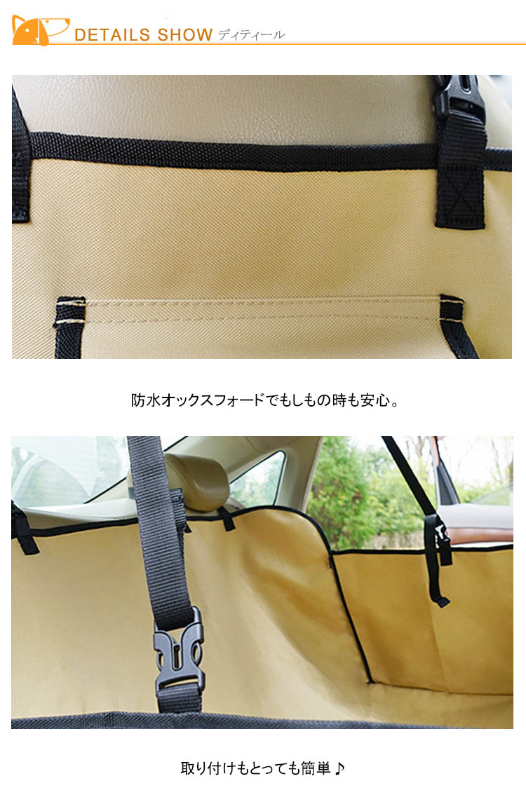 | ペットとおでかけ!車内の汚れを防ぐドライブシート。ペットと一緒にドライブを楽しみたい♪そんなあなたにオススメするシート。抜け毛や急なおトイレまで対応できる防水加工になっており、車の後部シートをしっかり保護します。使わないときはコンパクトに折り畳めます。 | |