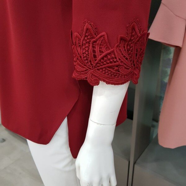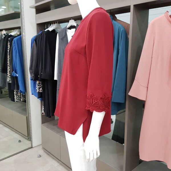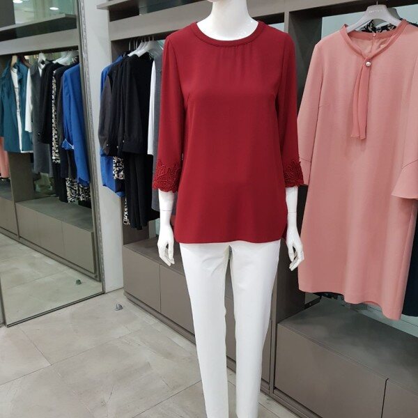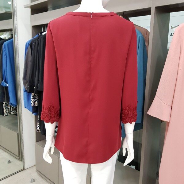 라운드목선의 소매에 레이스로 고급스러운 느낌을 주는 블라우스