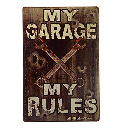 T-ray My Garage - My Rules sign - Vintage style made from 24 gauge metal with rusted corners for the Vintage Sign look