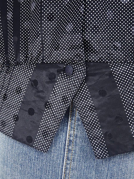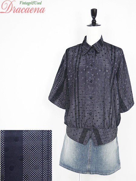 Ladies ブランド- カラー黒ベース メール便不可 コンディション★★★ 素材ポリエステル 表記サイズ44 スタッフコメント裾、後ろにゴム入り、変形デザインになっています◎。 実寸サイズ 着丈 62 cm 身幅 61 cm 肩幅 44 cm 袖丈 31 cm ※ウエスト・ヒップ以外は平置き採寸