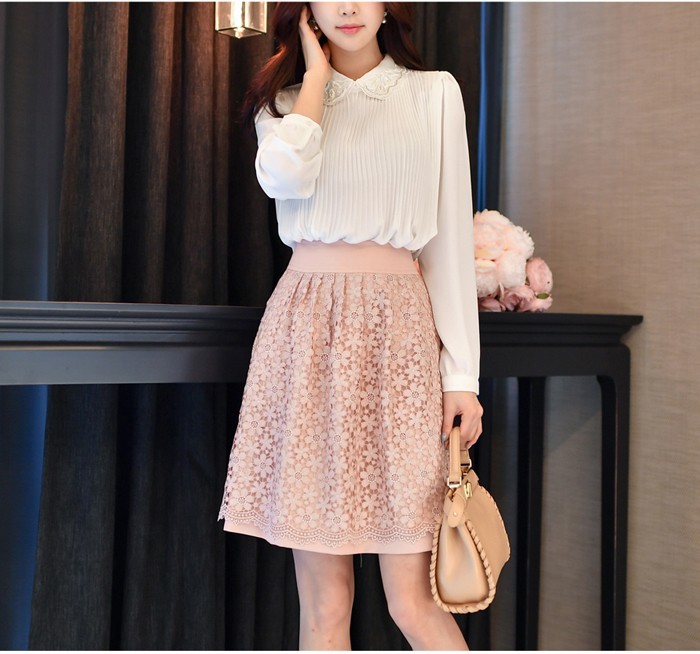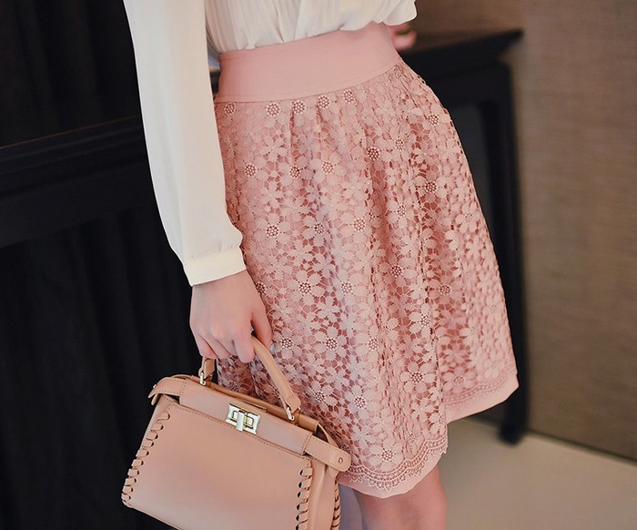 商品名:スカート フレアスカート ミニ丈 レース ハイウエスト
