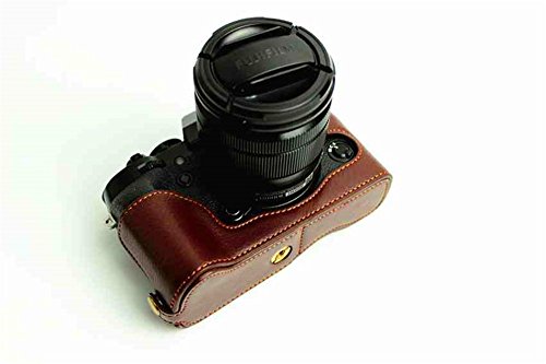 BolinUS Handmade Genuine Real Leather Half Camera Case Bag Cover for Fujifilm X-T1 XT1 Opening Version + Hand Strap -Coffee
