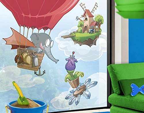 (PPS. Imaging)/Kids' Furniture Room Decor/Room Decor/DIRECT FROM USA/Window Mural Flying Farm Elephant In The Clouds window sticker window film window tattoo glass ...